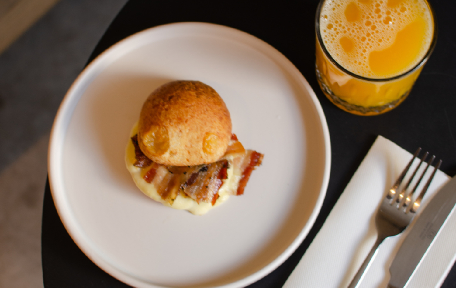 - Tostada de campo, palta, cherries, aceite de oliva y huevo poché.