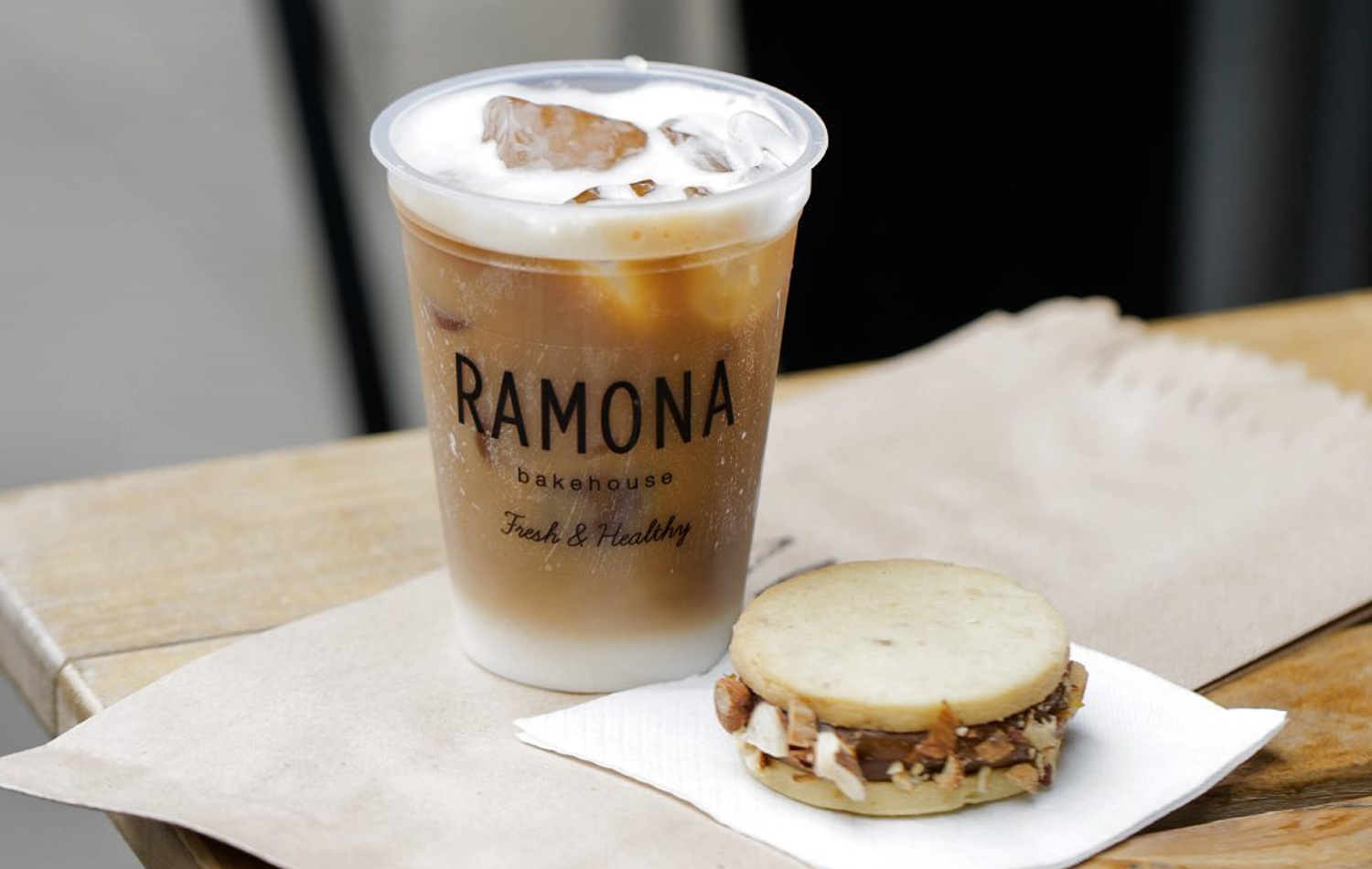 - 1 alfajor de almendras y Dulce de leche.