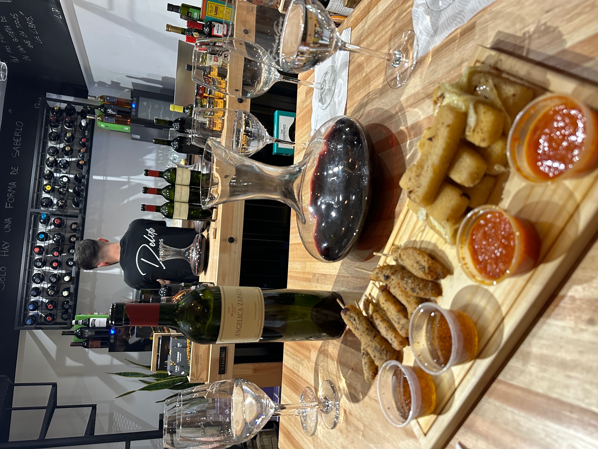 Opción 2 - Una degustación en nuestro local para 2 personas , incluye 5 tipos de bocados , degustación de 5 etiquetas de vino (bodega a elección según disponibilidad y fecha )